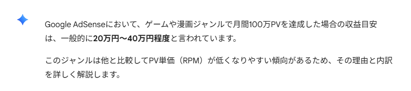 ブルーオーシャンは言い過ぎにしても、いい感じの漫画タイトルさえ探せれば、まだまだ2026年現在でも全然アドセンスで月10万円とか稼ぐチャンスは転がっていると思います。